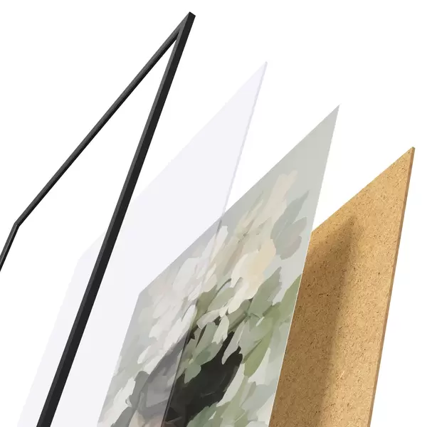 L’affiche encadrée est composée d’un cadre, d’un plexiglas, d’une image imprimée et d’un support en aggloméré. Elle est prête à être accrochée au mur grâce aux fixations situées à l’arrière.