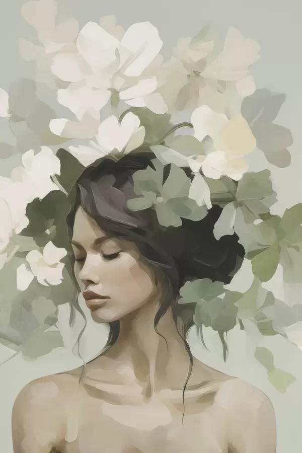 Poster Portrait d'une jeune fille avec une couronne de fleurs Nr f47807