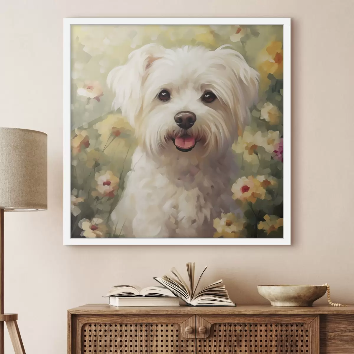 Poster Petit chien dans les fleurs f47811