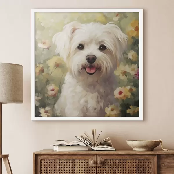 Poster Petit chien dans les fleurs Nr f47811