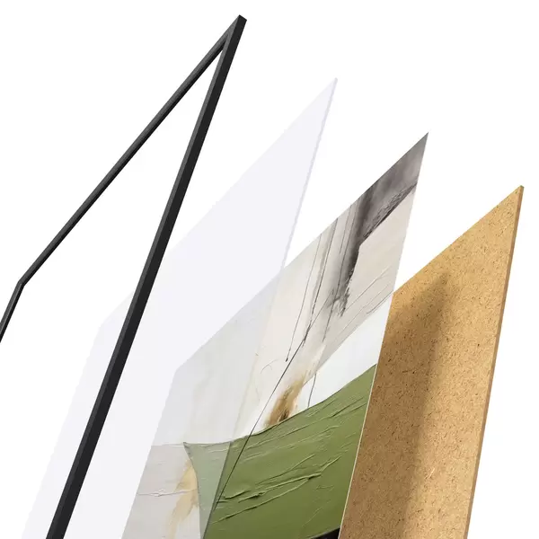 L’affiche encadrée est composée d’un cadre, d’un plexiglas, d’une image imprimée et d’un support en aggloméré. Elle est prête à être accrochée au mur grâce aux fixations situées à l’arrière.