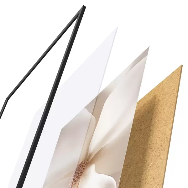 L’affiche encadrée est composée d’un cadre, d’un plexiglas, d’une image imprimée et d’un support en aggloméré. Elle est prête à être accrochée au mur grâce aux fixations situées à l’arrière.