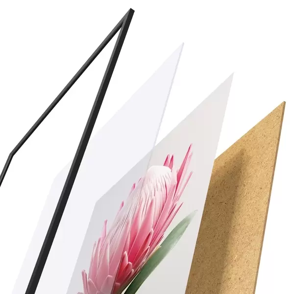 L’affiche encadrée est composée d’un cadre, d’un plexiglas, d’une image imprimée et d’un support en aggloméré. Elle est prête à être accrochée au mur grâce aux fixations situées à l’arrière.