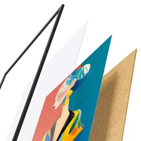 L’affiche encadrée est composée d’un cadre, d’un plexiglas, d’une image imprimée et d’un support en aggloméré. Elle est prête à être accrochée au mur grâce aux fixations situées à l’arrière.