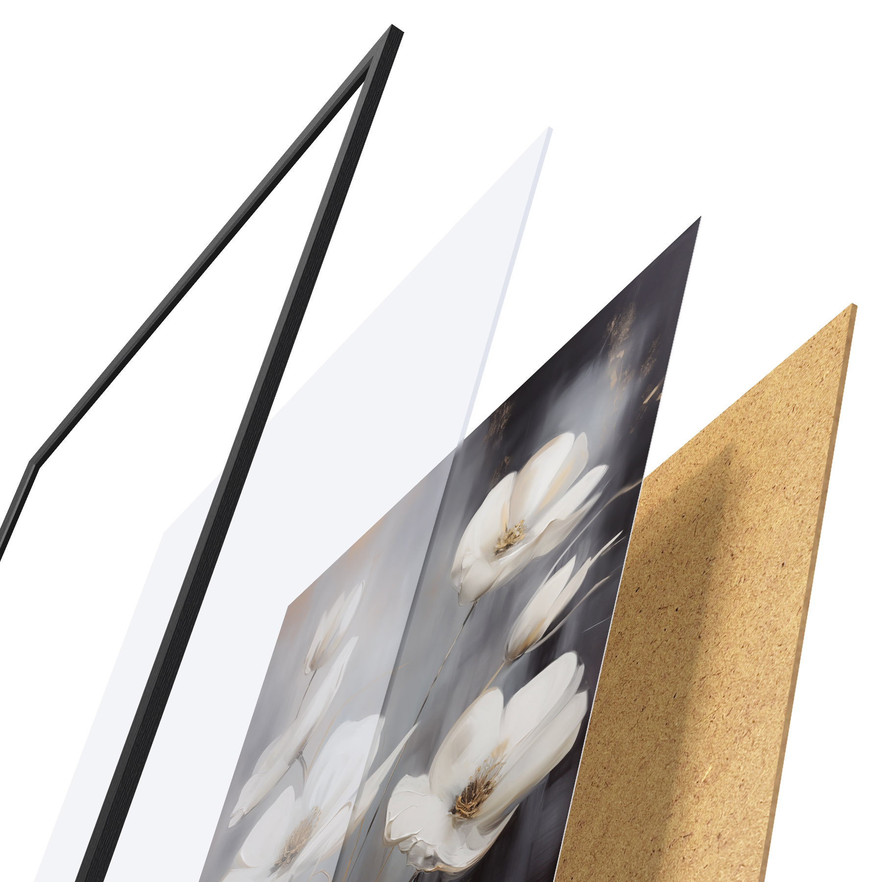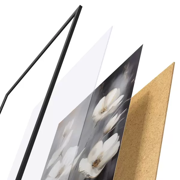 L’affiche encadrée est composée d’un cadre, d’un plexiglas, d’une image imprimée et d’un support en aggloméré. Elle est prête à être accrochée au mur grâce aux fixations situées à l’arrière.