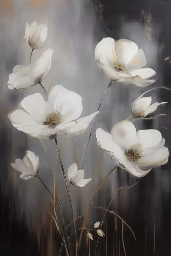 Poster Fleurs blanches au cœur brun et aux tiges fines sur fond sombre et texturé Nr f47858