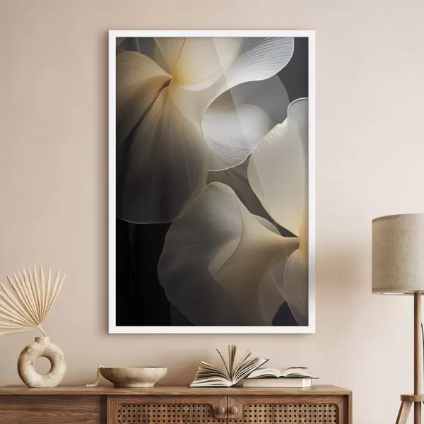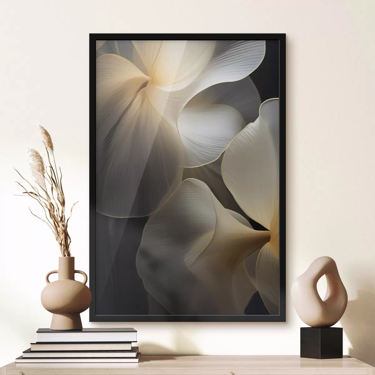 Poster Pétales abstraits translucides aux lignes délicates, sur fond sombre Nr f47859