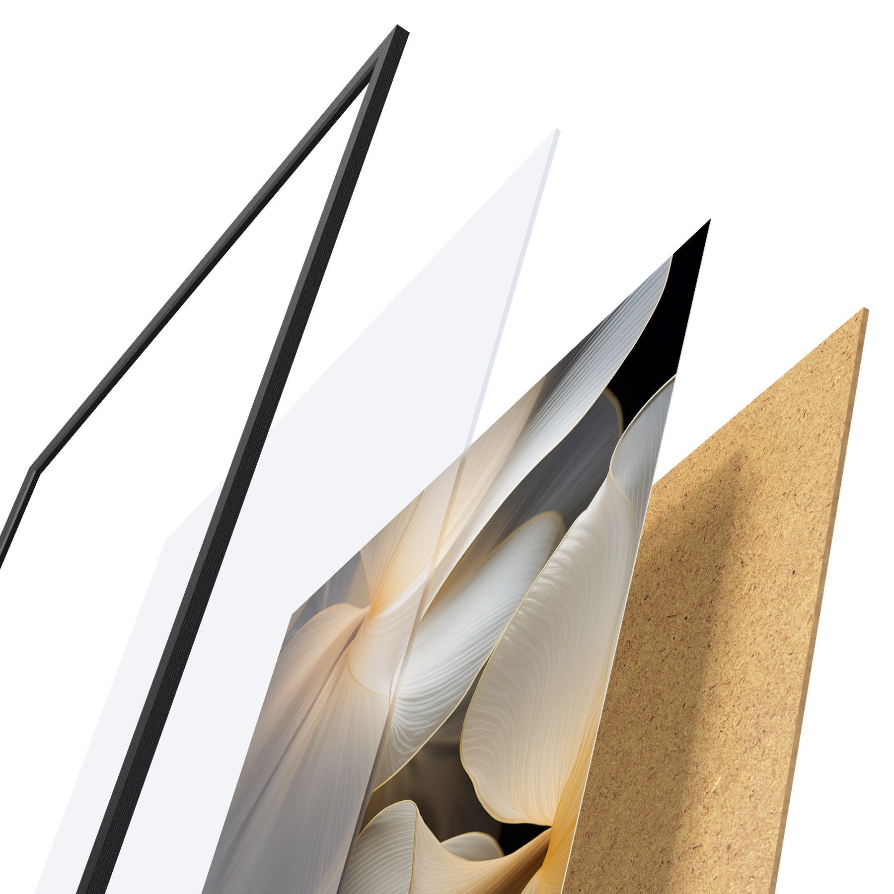 L’affiche encadrée est composée d’un cadre, d’un plexiglas, d’une image imprimée et d’un support en aggloméré. Elle est prête à être accrochée au mur grâce aux fixations situées à l’arrière.