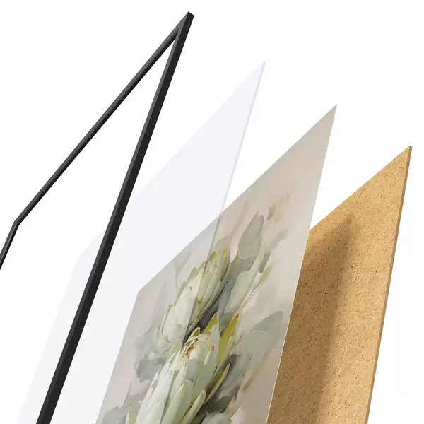 L’affiche encadrée est composée d’un cadre, d’un plexiglas, d’une image imprimée et d’un support en aggloméré. Elle est prête à être accrochée au mur grâce aux fixations situées à l’arrière.