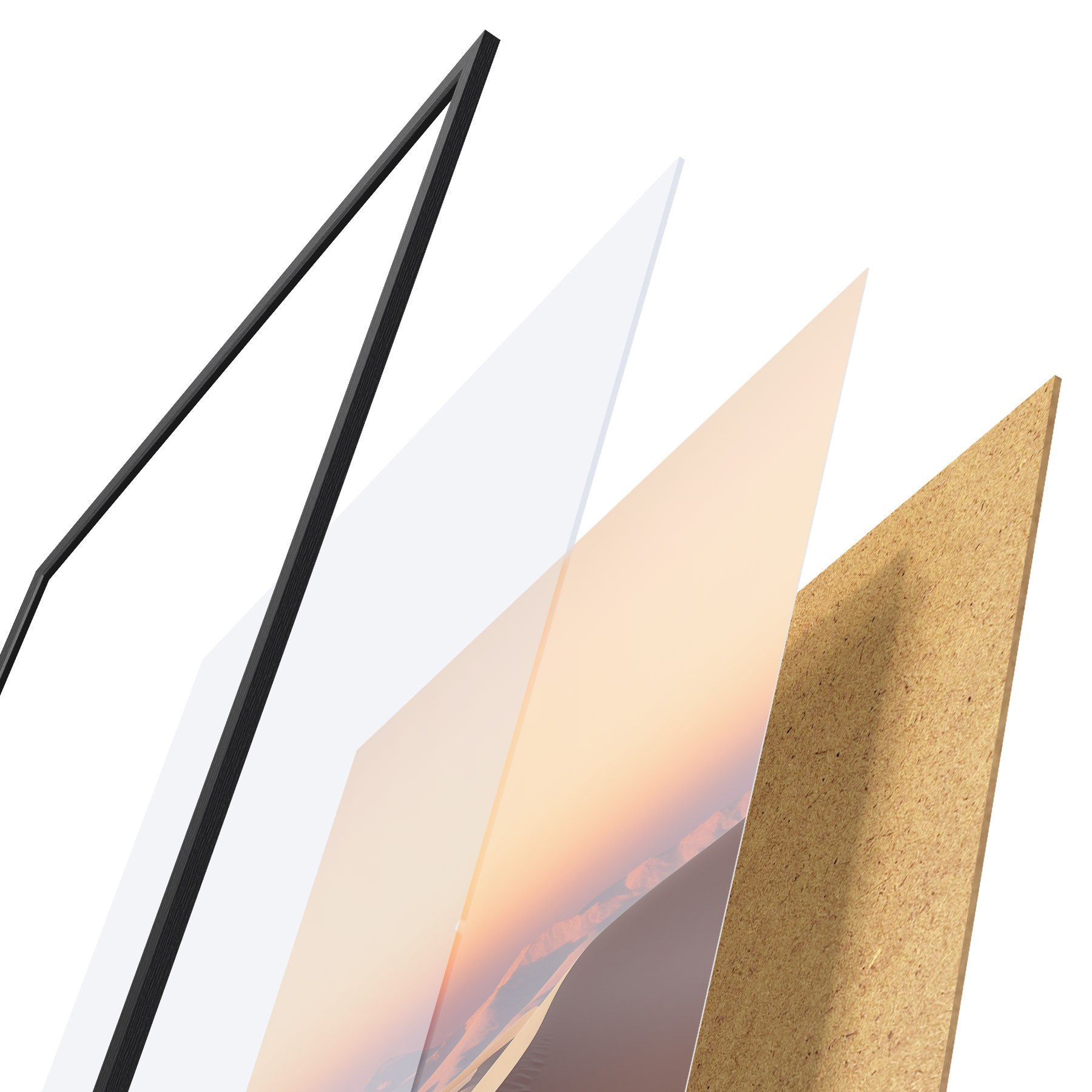 L’affiche encadrée est composée d’un cadre, d’un plexiglas, d’une image imprimée et d’un support en aggloméré. Elle est prête à être accrochée au mur grâce aux fixations situées à l’arrière.