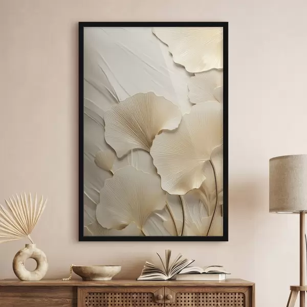 Poster Feuilles de ginkgo abstraites sur fond clair texturé, composition élégante et abstraite f47867