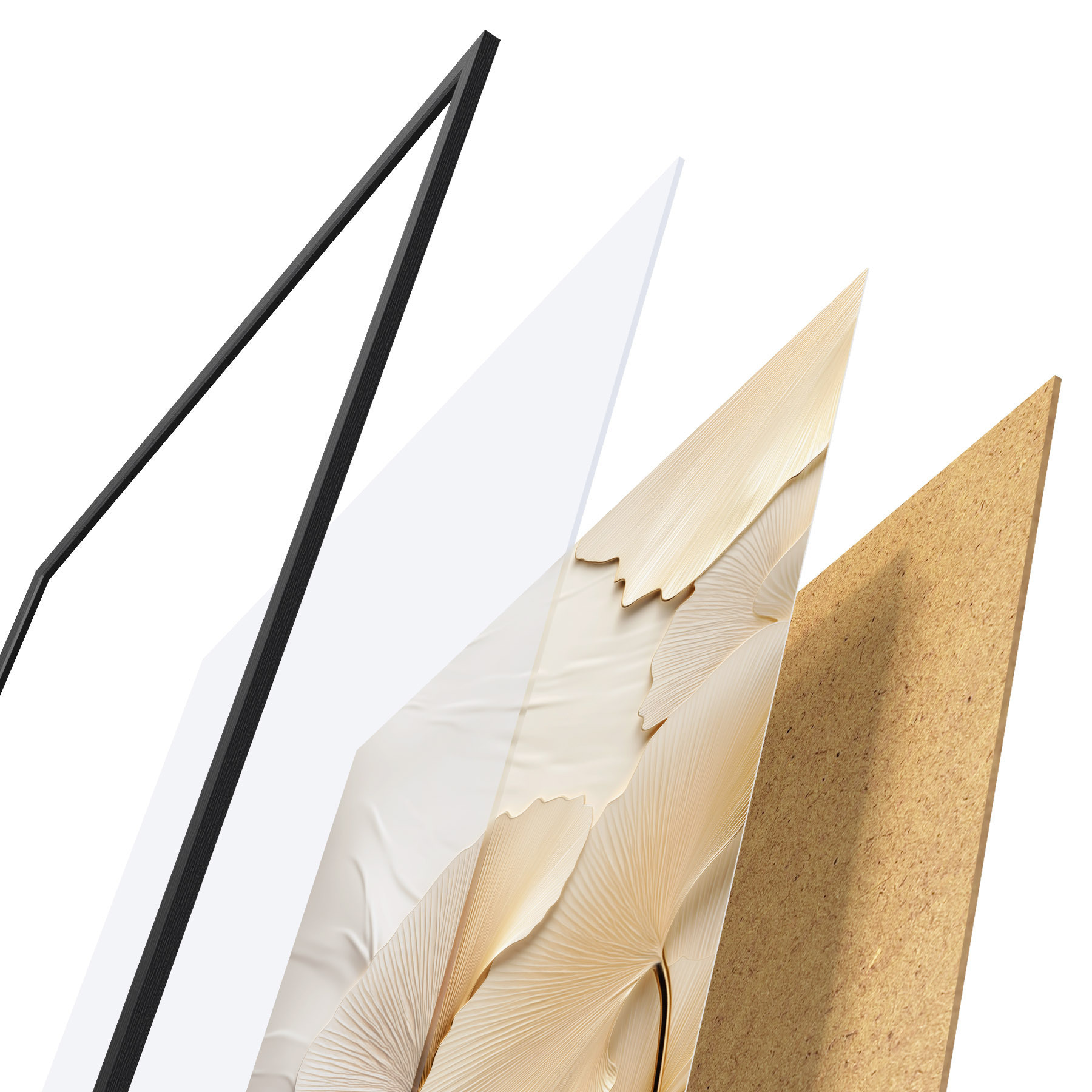 Poster Feuilles de ginkgo abstraites sur fond clair texturé, composition élégante et abstraite Nr f47867
