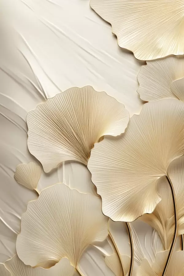 Poster Feuilles de ginkgo abstraites sur fond clair texturé, composition élégante et abstraite Nr f47867