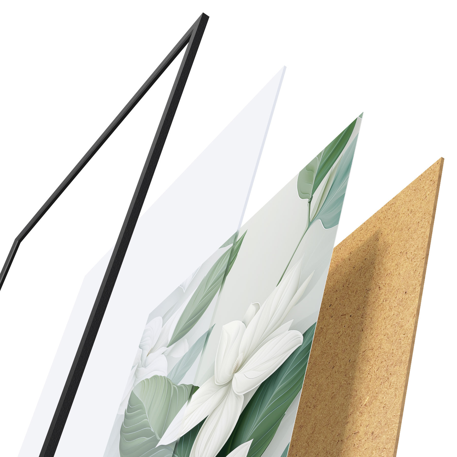 L’affiche encadrée est composée d’un cadre, d’un plexiglas, d’une image imprimée et d’un support en aggloméré. Elle est prête à être accrochée au mur grâce aux fixations situées à l’arrière.