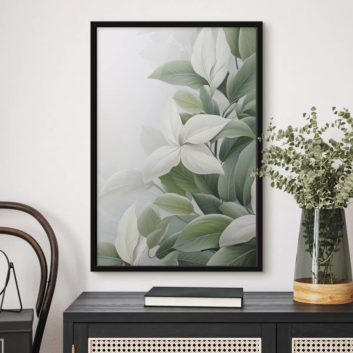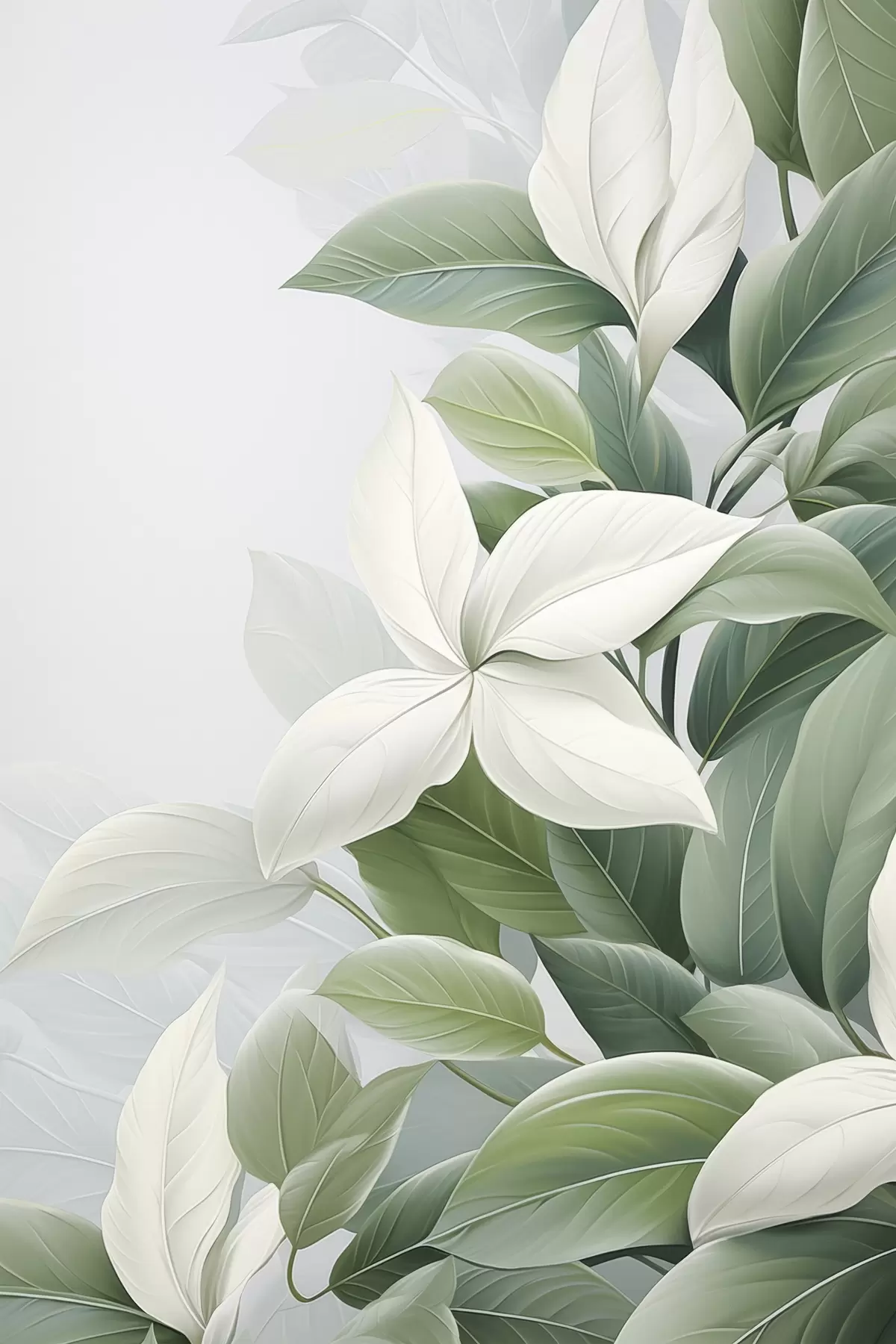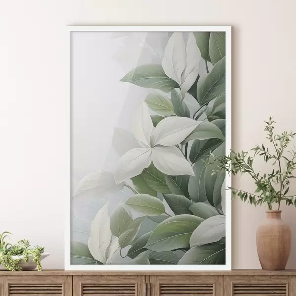 Poster Fleurs blanches avec feuilles vertes, fond pastel Nr f47870