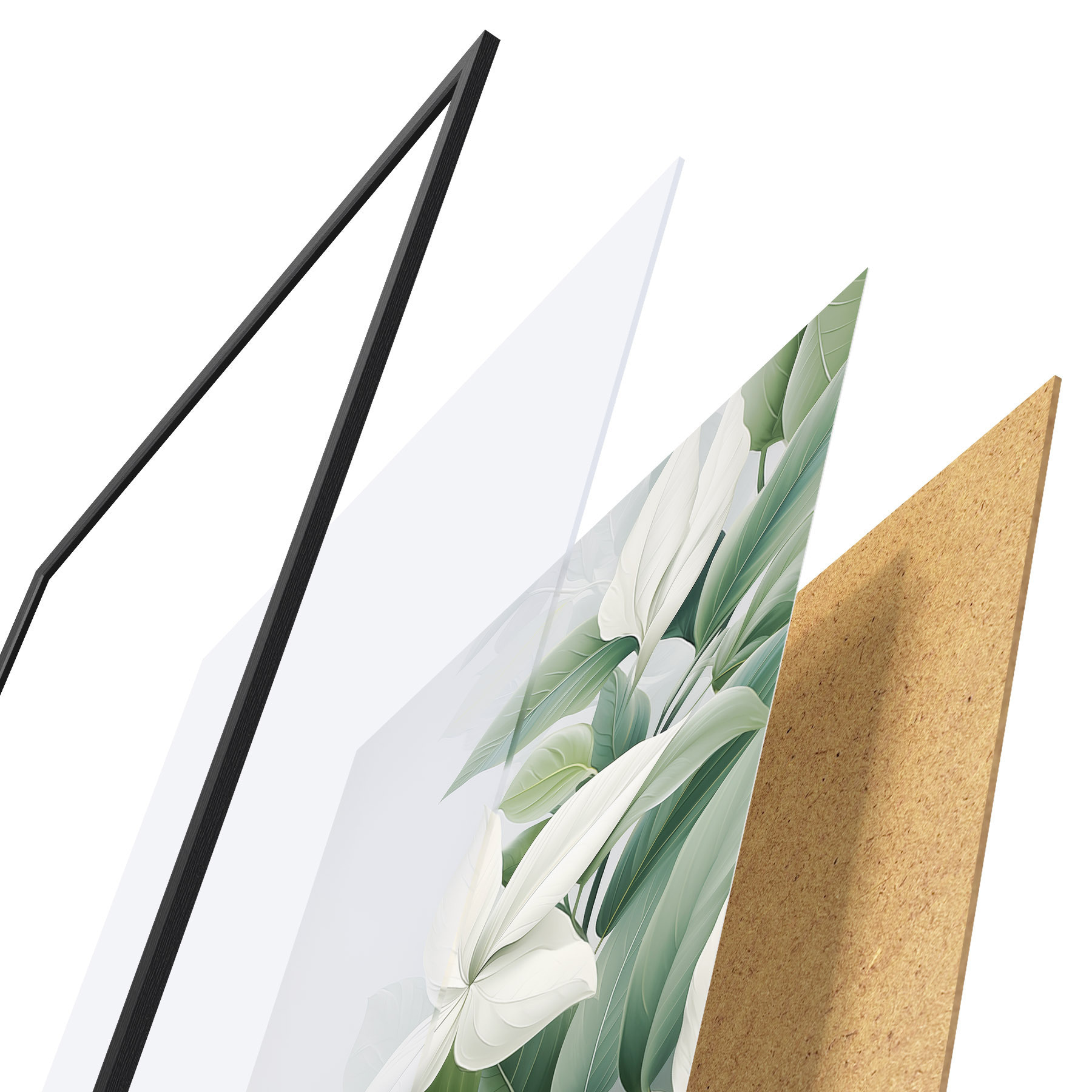 L’affiche encadrée est composée d’un cadre, d’un plexiglas, d’une image imprimée et d’un support en aggloméré. Elle est prête à être accrochée au mur grâce aux fixations situées à l’arrière.