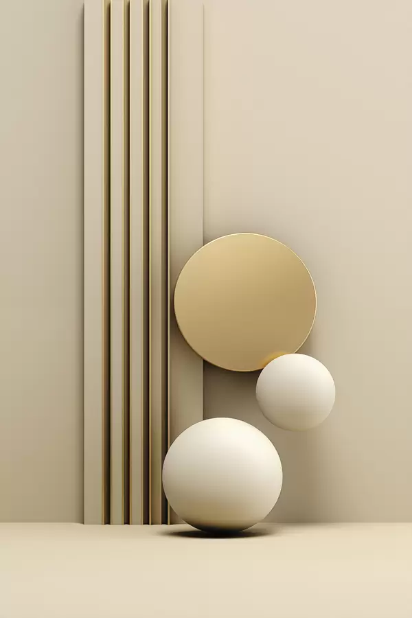 Poster Art moderne abstrait beige avec lignes verticales et sphères Nr f47871