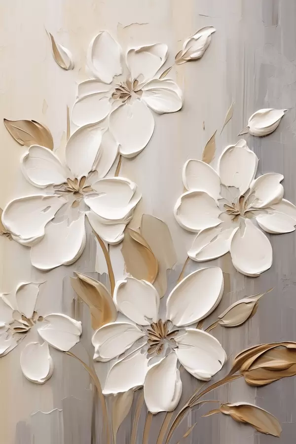 Poster Fleurs blanches abstraites aux pétales texturés, sur fond neutre avec imitation de coups de pinceau subtils. Nr f47874