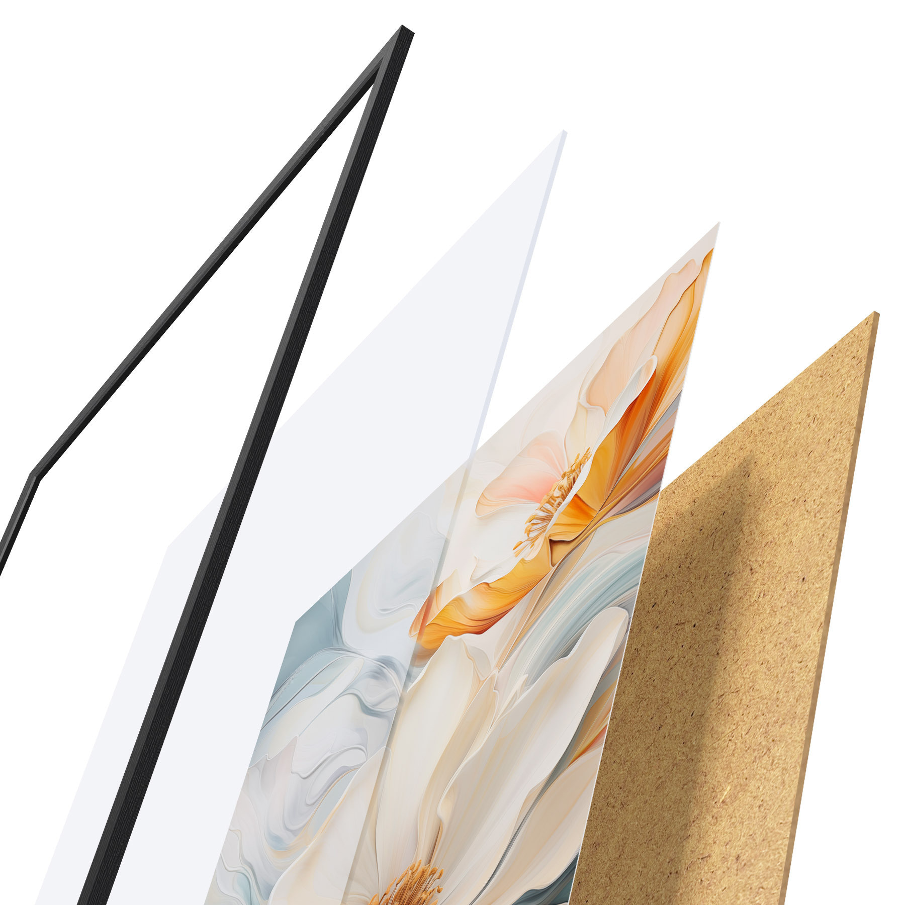 L’affiche encadrée est composée d’un cadre, d’un plexiglas, d’une image imprimée et d’un support en aggloméré. Elle est prête à être accrochée au mur grâce aux fixations situées à l’arrière.