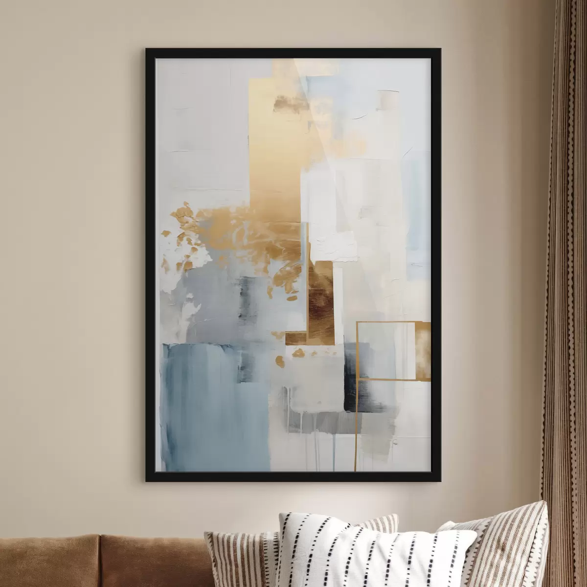 Poster Formes géométriques abstraites aux couleurs jaune, bleu et blanc, composition texturée et minimaliste Nr f47881