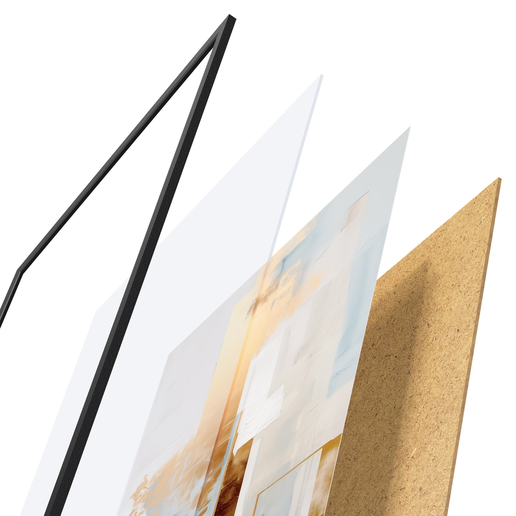 L’affiche encadrée est composée d’un cadre, d’un plexiglas, d’une image imprimée et d’un support en aggloméré. Elle est prête à être accrochée au mur grâce aux fixations situées à l’arrière.