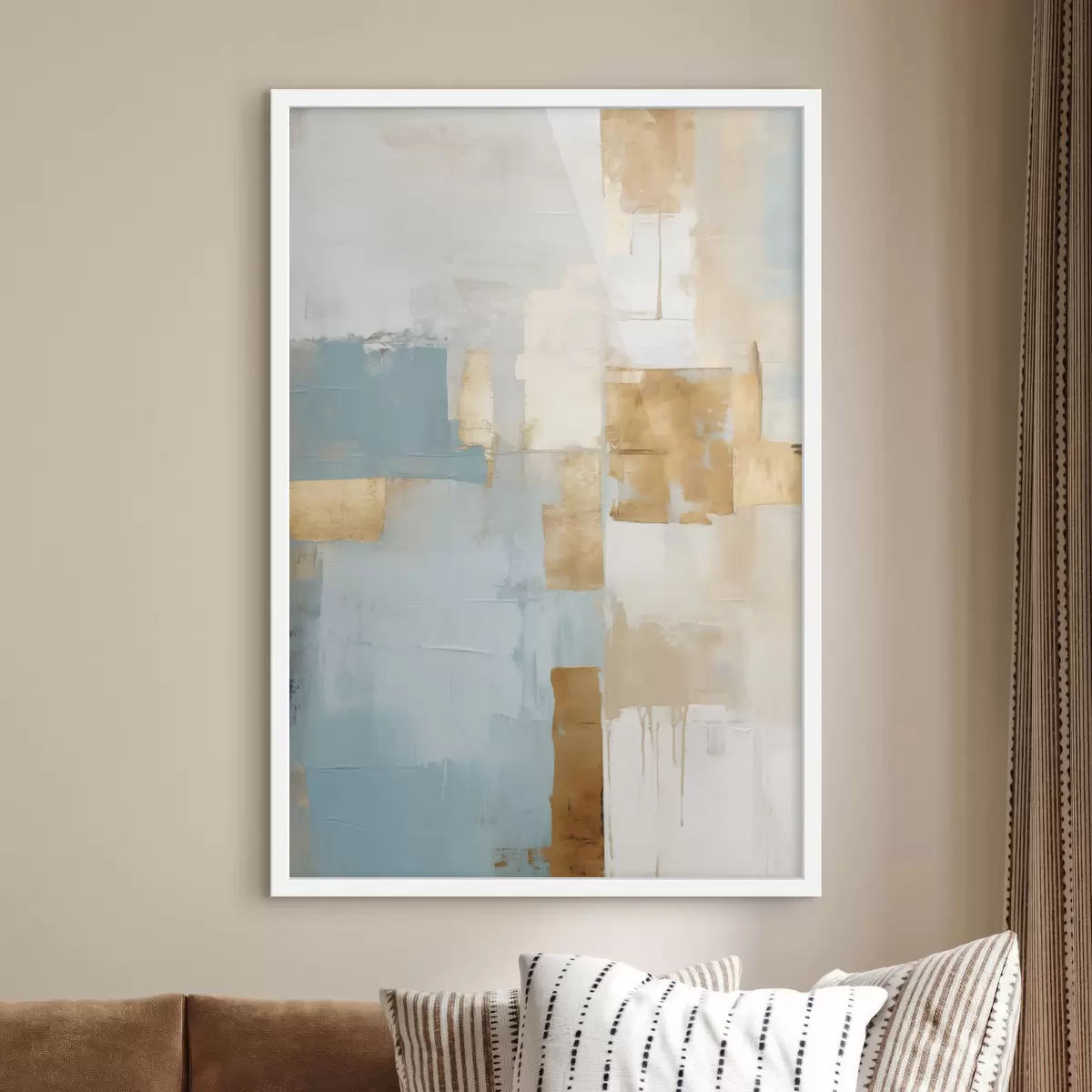 Poster Formes géométriques abstraites aux couleurs jaune, bleu et blanc, composition texturée et minimaliste Nr f47882