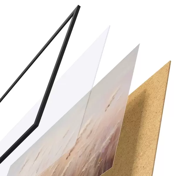 L’affiche encadrée est composée d’un cadre, d’un plexiglas, d’une image imprimée et d’un support en aggloméré. Elle est prête à être accrochée au mur grâce aux fixations situées à l’arrière.