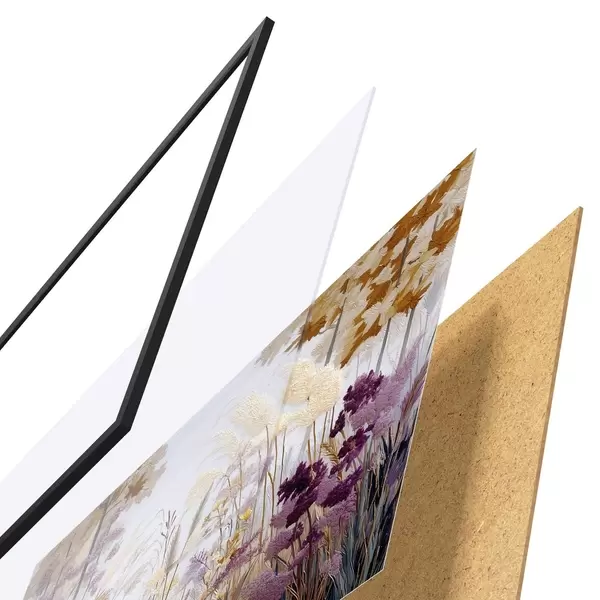 L’affiche encadrée est composée d’un cadre, d’un plexiglas, d’une image imprimée et d’un support en aggloméré. Elle est prête à être accrochée au mur grâce aux fixations situées à l’arrière.