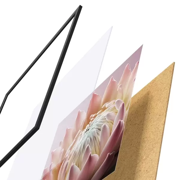 L’affiche encadrée est composée d’un cadre, d’un plexiglas, d’une image imprimée et d’un support en aggloméré. Elle est prête à être accrochée au mur grâce aux fixations situées à l’arrière.
