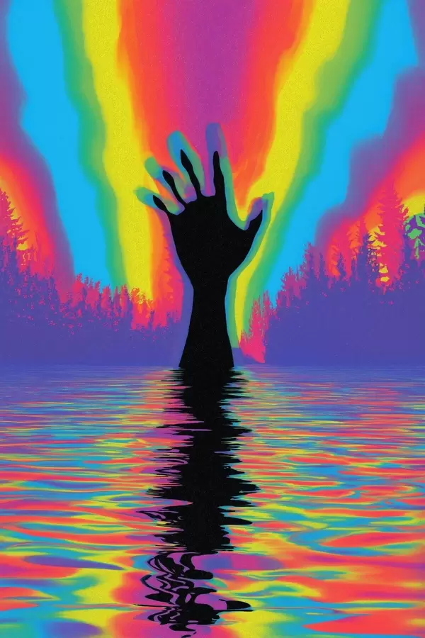 Poster Silhouette d'une main au-dessus de l'eau Nr f47903
