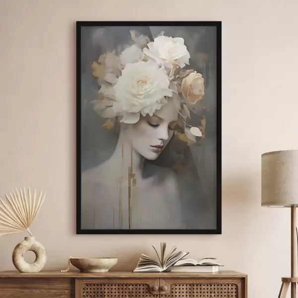 Poster Portrait de femme avec des fleurs blanches Nr f47904