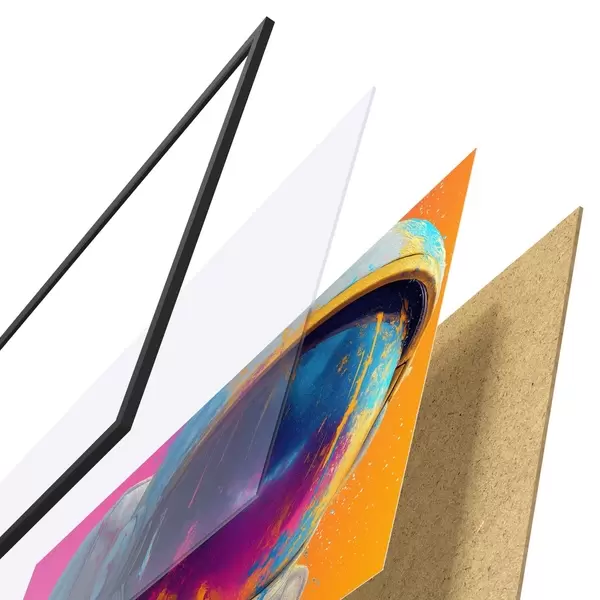 L’affiche encadrée est composée d’un cadre, d’un plexiglas, d’une image imprimée et d’un support en aggloméré. Elle est prête à être accrochée au mur grâce aux fixations situées à l’arrière.