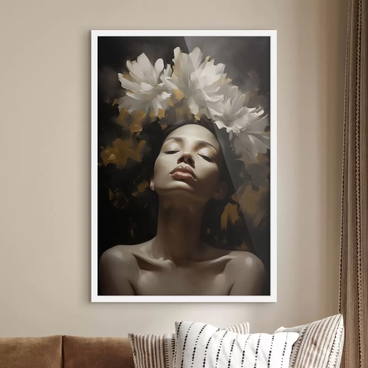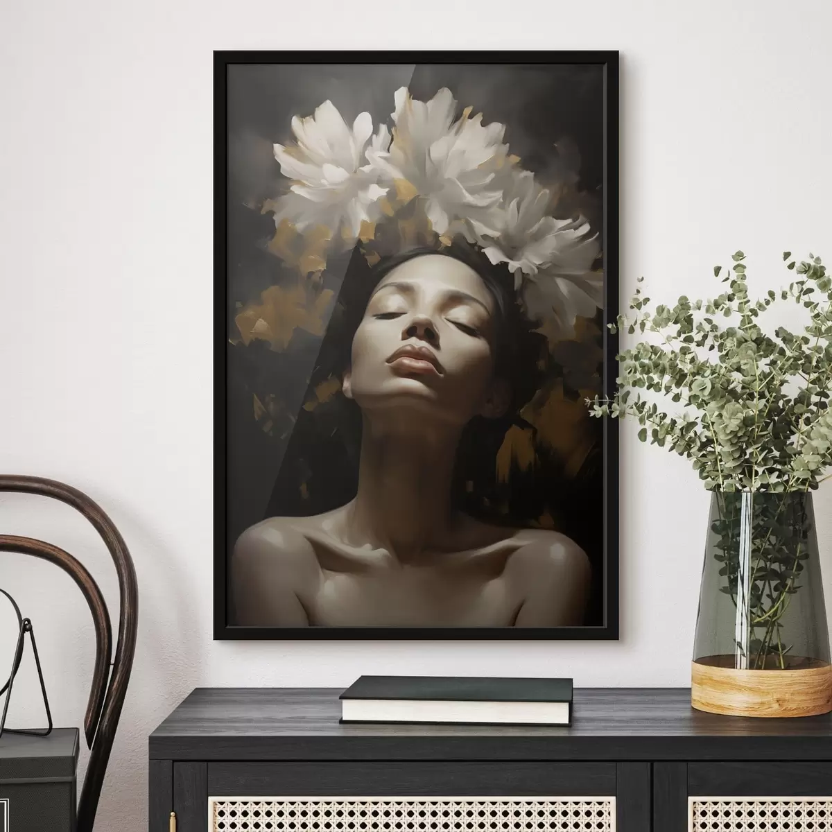 Poster Portrait de femme avec des fleurs blanches Nr f47918