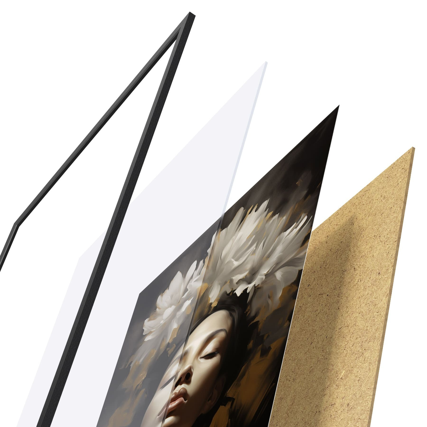 L’affiche encadrée est composée d’un cadre, d’un plexiglas, d’une image imprimée et d’un support en aggloméré. Elle est prête à être accrochée au mur grâce aux fixations situées à l’arrière.