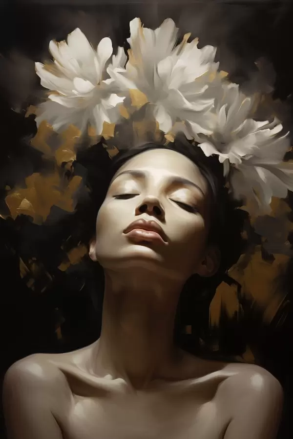 Poster Portrait de femme avec des fleurs blanches Nr f47918