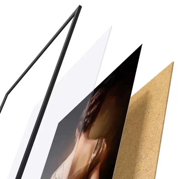L’affiche encadrée est composée d’un cadre, d’un plexiglas, d’une image imprimée et d’un support en aggloméré. Elle est prête à être accrochée au mur grâce aux fixations situées à l’arrière.