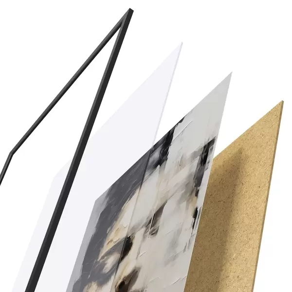 L’affiche encadrée est composée d’un cadre, d’un plexiglas, d’une image imprimée et d’un support en aggloméré. Elle est prête à être accrochée au mur grâce aux fixations situées à l’arrière.