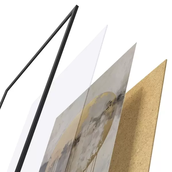 L’affiche encadrée est composée d’un cadre, d’un plexiglas, d’une image imprimée et d’un support en aggloméré. Elle est prête à être accrochée au mur grâce aux fixations situées à l’arrière.