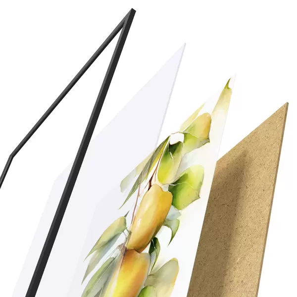 L’affiche encadrée est composée d’un cadre, d’un plexiglas, d’une image imprimée et d’un support en aggloméré. Elle est prête à être accrochée au mur grâce aux fixations situées à l’arrière.
