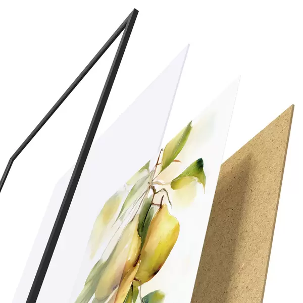 L’affiche encadrée est composée d’un cadre, d’un plexiglas, d’une image imprimée et d’un support en aggloméré. Elle est prête à être accrochée au mur grâce aux fixations situées à l’arrière.