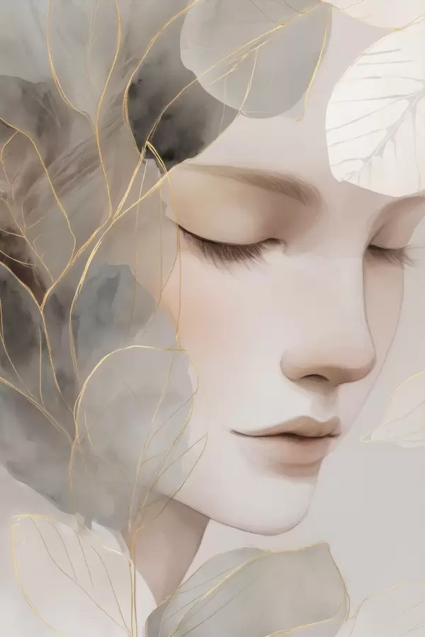 Poster fille dans les feuilles Nr f47937