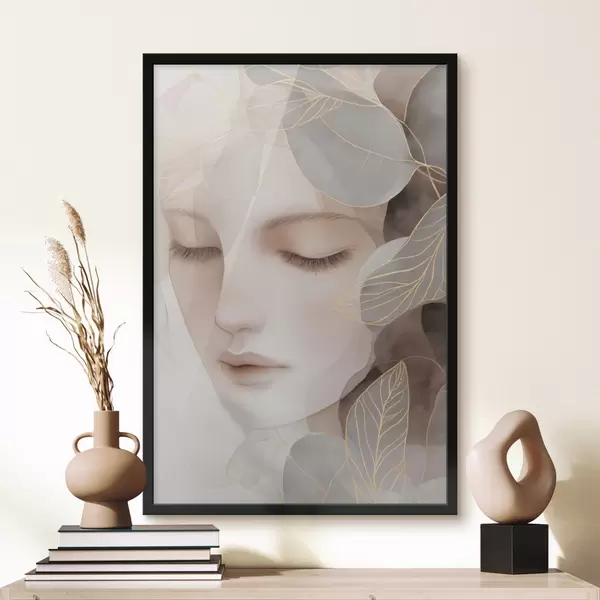 Poster fille dans les feuilles f47938