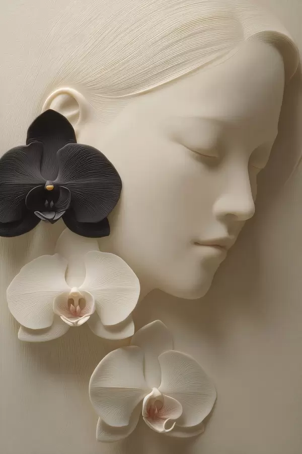 Poster fille avec des orchidées en bas-relief Nr f47941