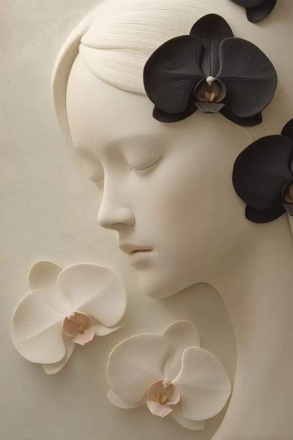 Poster fille avec des orchidées en bas-relief Nr f47942