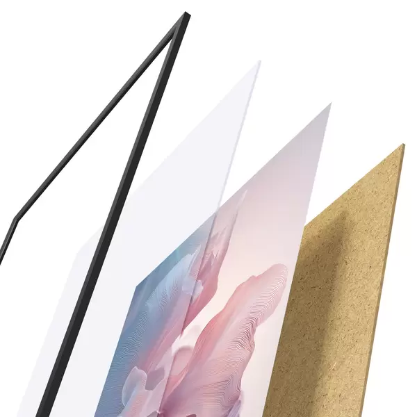 L’affiche encadrée est composée d’un cadre, d’un plexiglas, d’une image imprimée et d’un support en aggloméré. Elle est prête à être accrochée au mur grâce aux fixations situées à l’arrière.