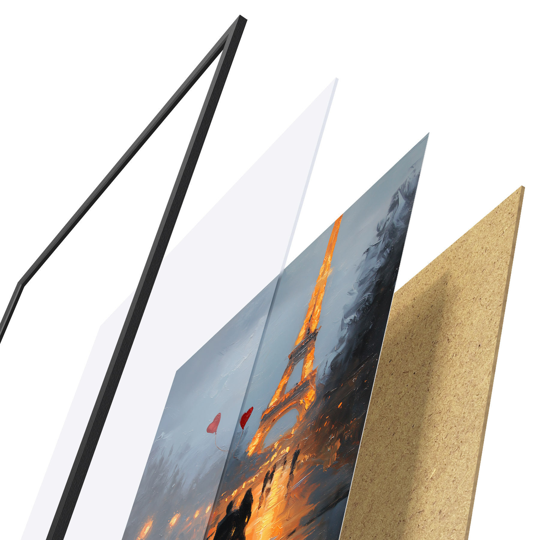 L’affiche encadrée est composée d’un cadre, d’un plexiglas, d’une image imprimée et d’un support en aggloméré. Elle est prête à être accrochée au mur grâce aux fixations situées à l’arrière.