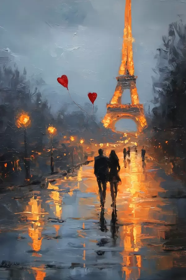 Poster Promenade romantique à Paris, style peinture à l'huile f47952