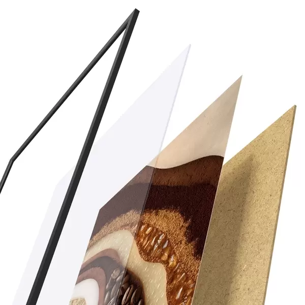 L’affiche encadrée est composée d’un cadre, d’un plexiglas, d’une image imprimée et d’un support en aggloméré. Elle est prête à être accrochée au mur grâce aux fixations situées à l’arrière.