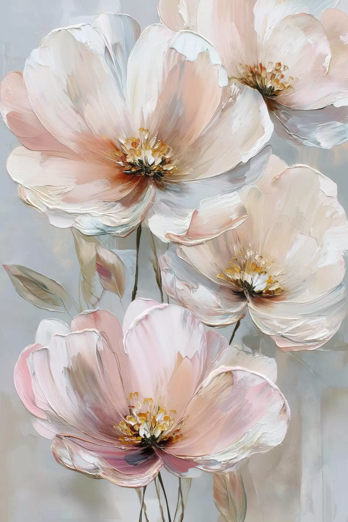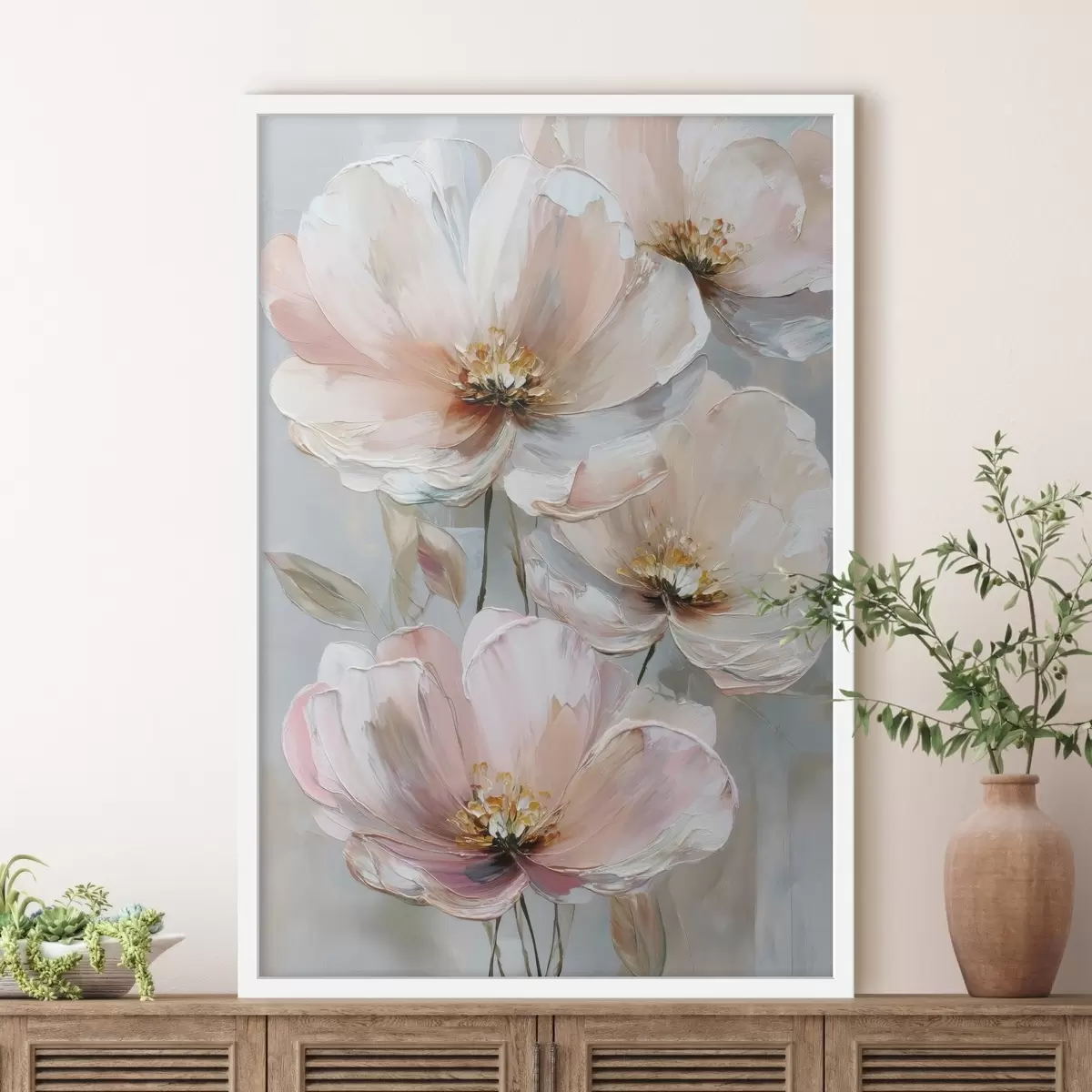 Poster Fleurs blanc-rose avec des coups de pinceau expressifs dans un style peinture à l'huile f47962