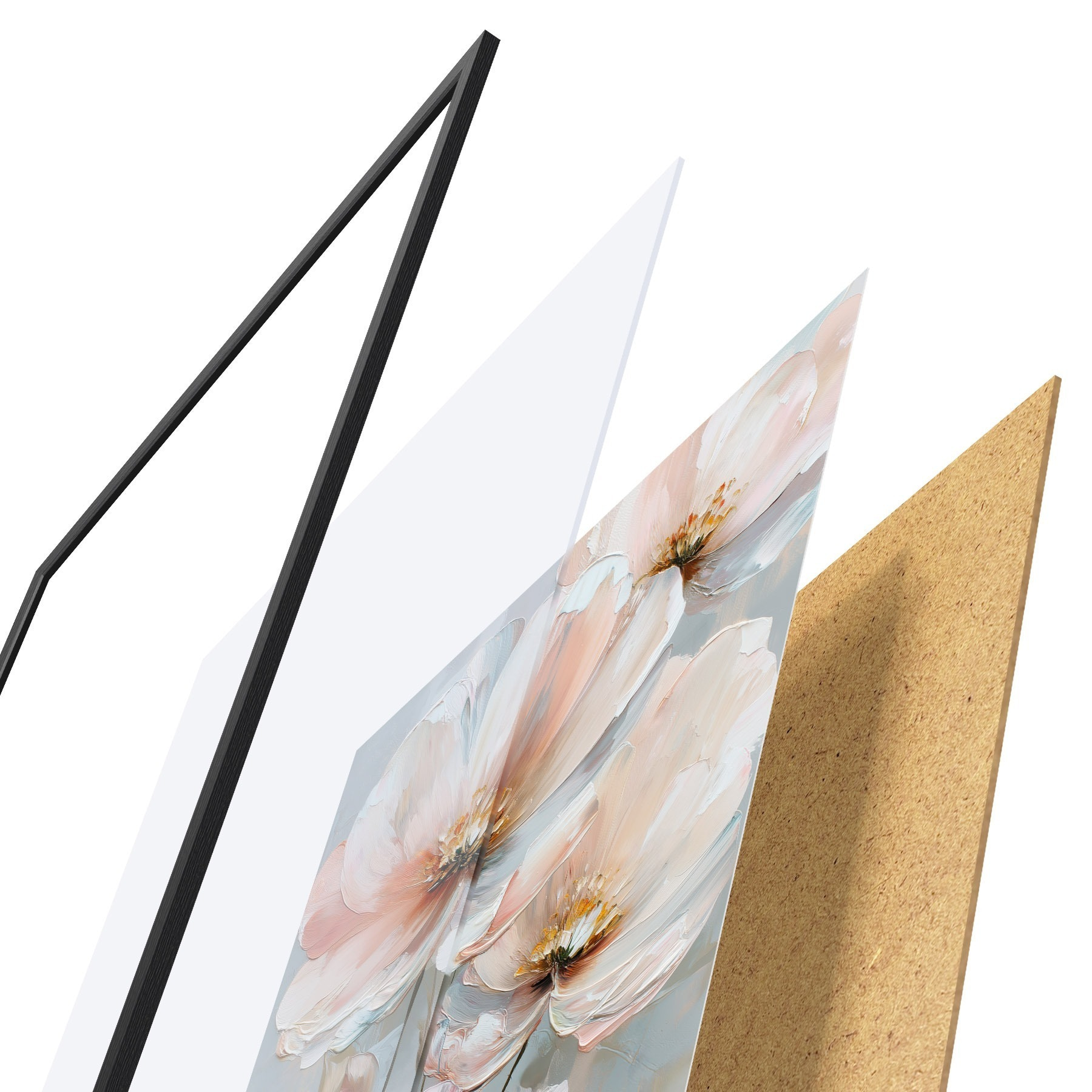 Poster Fleurs blanc-rose avec des coups de pinceau expressifs dans un style peinture à l'huile Nr f47962